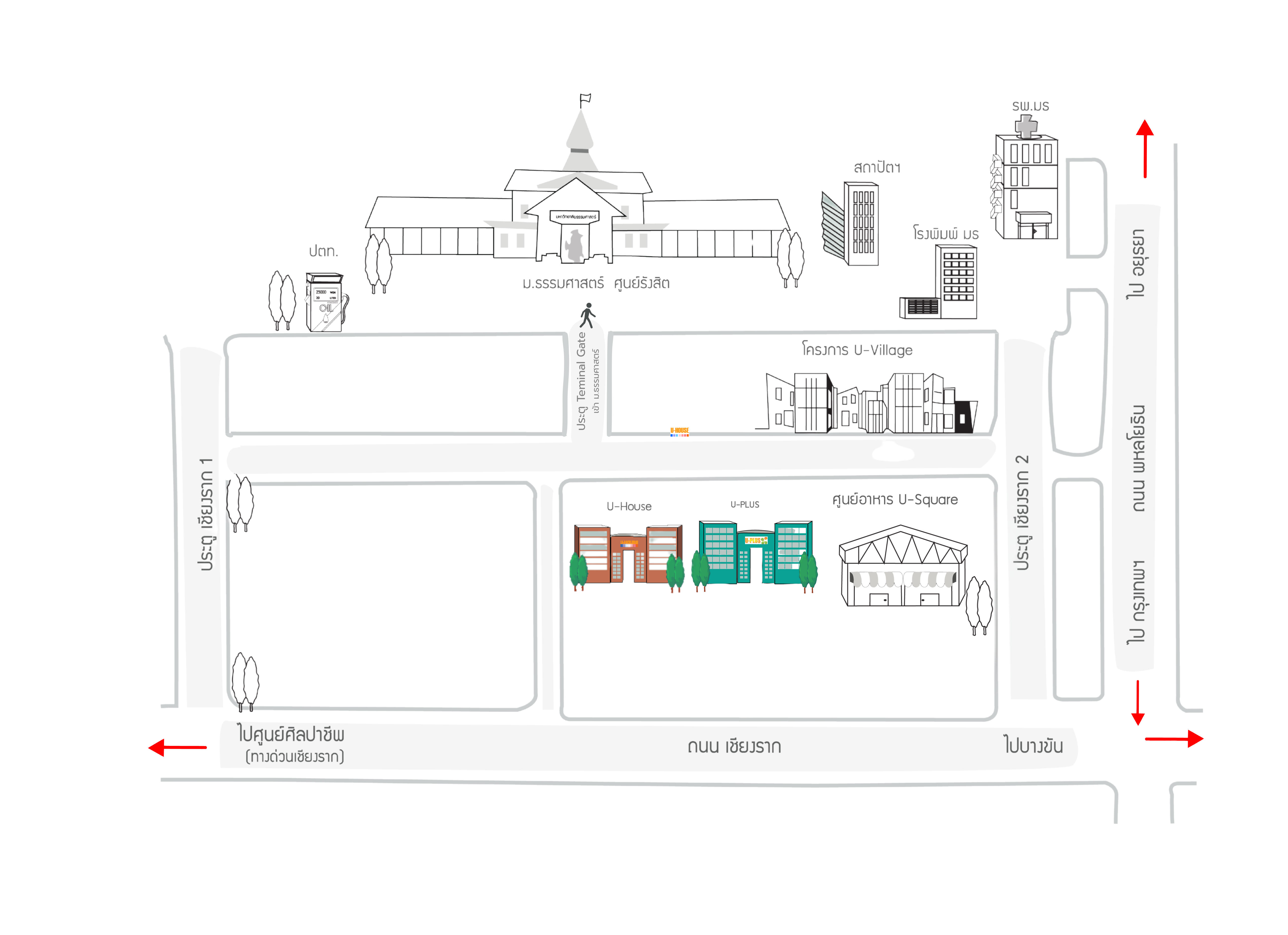 พื้นที่สีเขียวโดยรอบ พร้อมด้วยส่วนกลางหลากหลายโซน